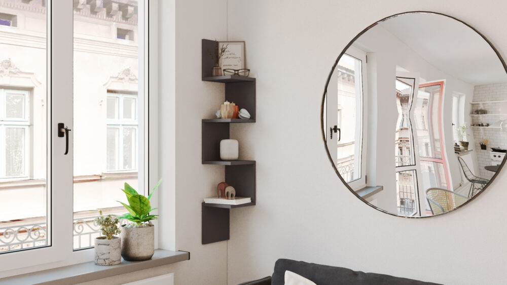 - מדפים קטנים בעיצוב אסימטרי.