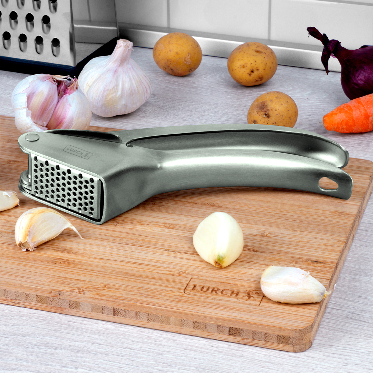 כותש השום של LURCH הוא כלי מטבח ייחודי ואמין, המיוצר כולו מנירוסטה עמידה (18/8), שהיא הבחירה המובילה במטבח המקצועי. הוא תוכנן לשימוש ממושך ומאפשר כתישה קלה ונוחה של שיני שום גדולות ולא קלופות ולחסוך בזמן ובמאמץ. הידית הארוכה מעניקה מנוף אידיאלי להפעיל מינימום כוח במהלך הכתישה, מה שהופך אותו לבחירה מצוינת גם עבור אנשים עם חולשה בידיים. מוצר זה מבטיח איכות לאורך שנים וביצועים מצוינים לעומת מוצרים אחרים שנוטים לשחיקה מהירה.