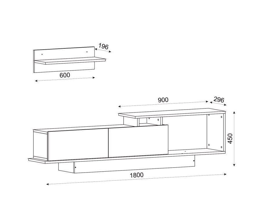 • מידות המזנון: גובה 45 ס"מ, רוחב 180 ס"מ, עומק 29.5 ס"מ.