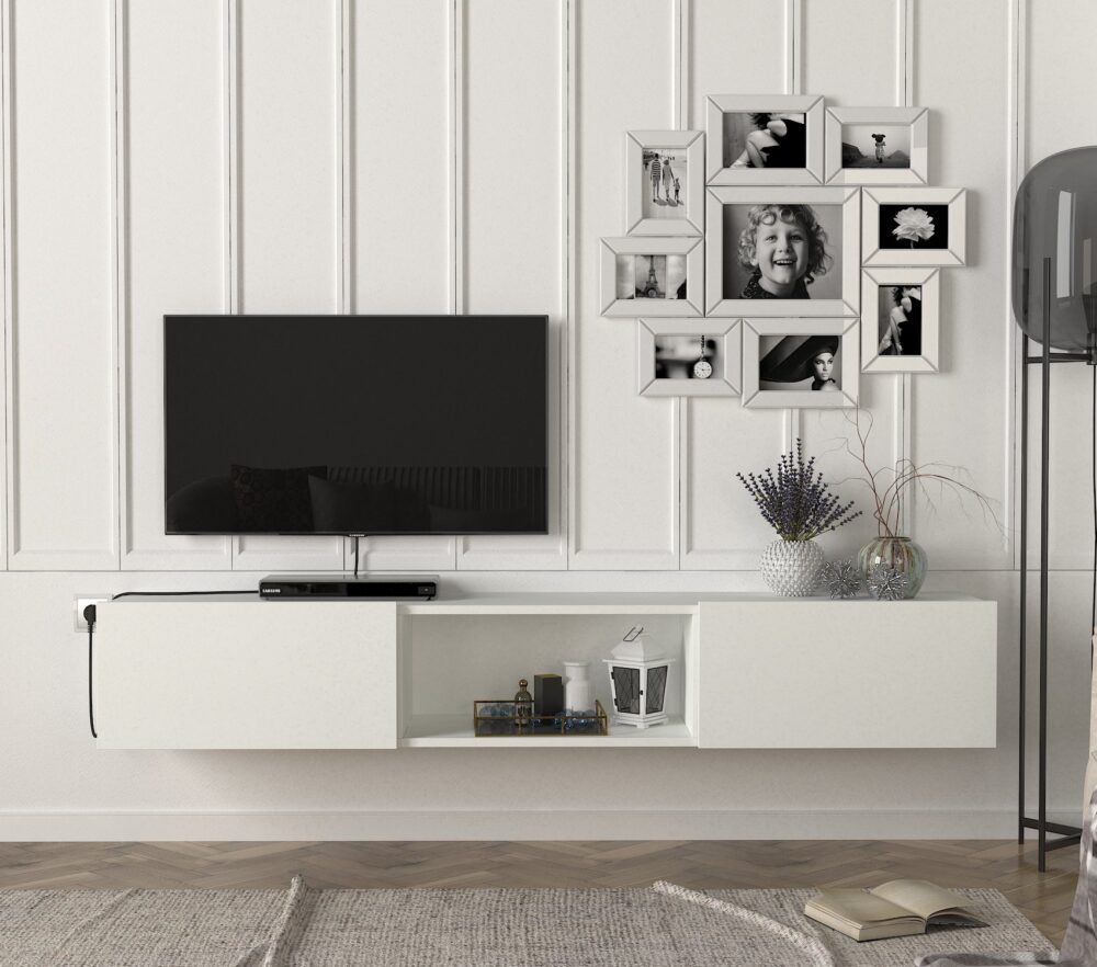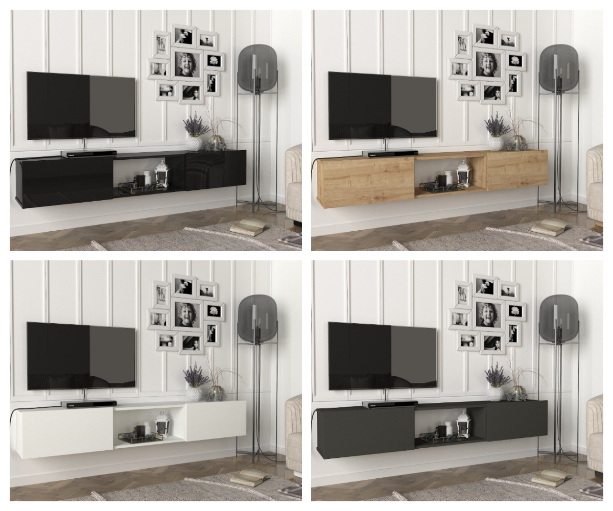מזנון טלוויזיה צף בעיצוב מודרני, מיועד להרכבה עצמית – דגם Hilary DE8806 – מבית HOMAX