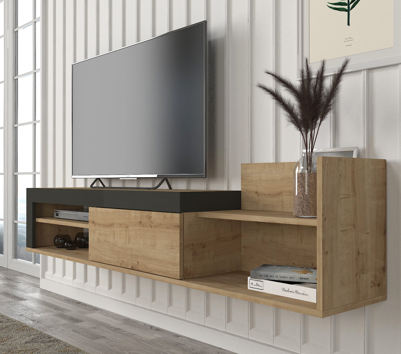 המזנון מהווה חלל אחסון פונקציונלי שמתאים לכל חלל עכשווי. מיועד למיקום מתחת לטלוויזיה במגוון עיצובים מדהימים. כולל: