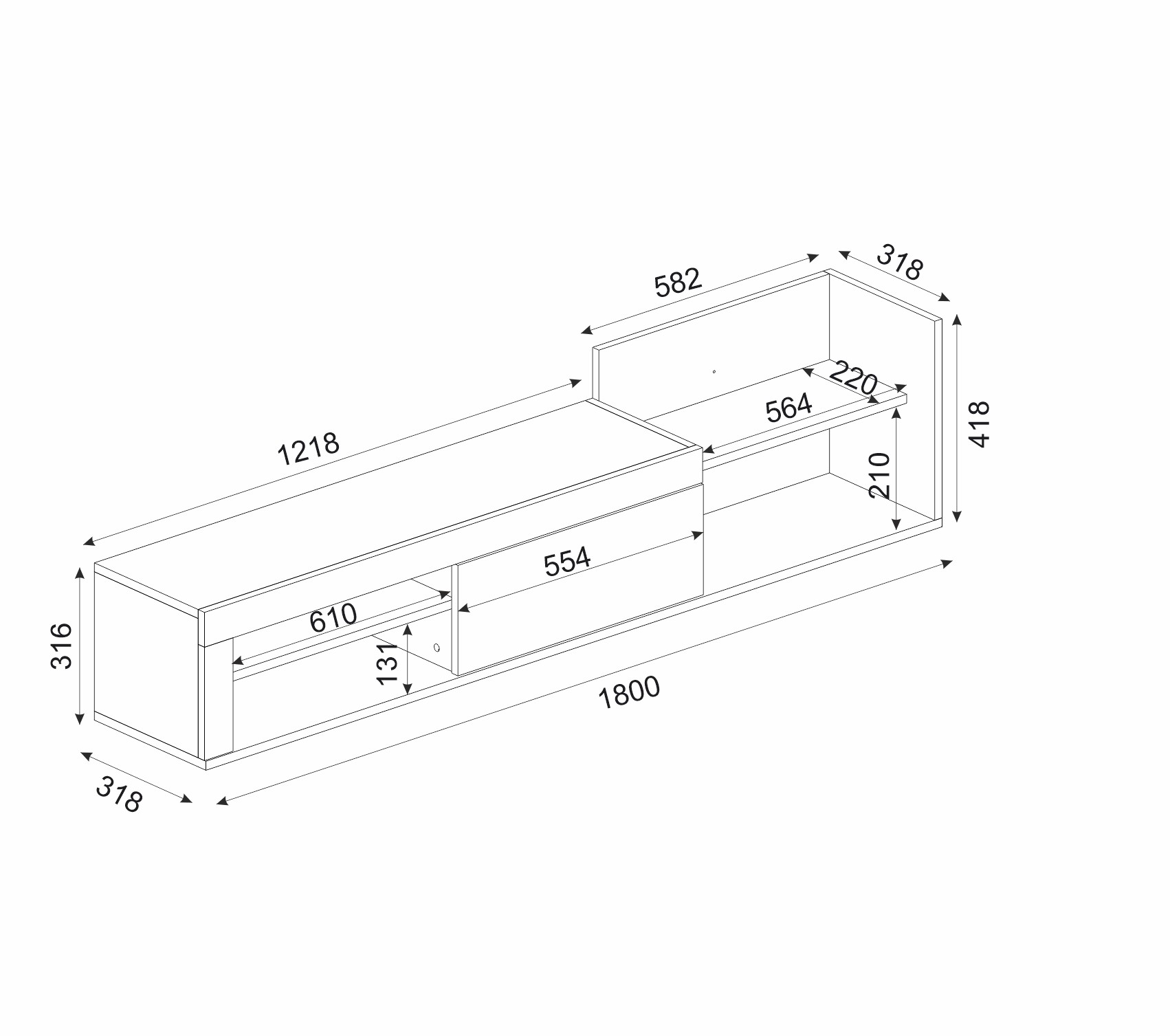 • סוג: מזנון צף שממוקם מתחת לטלוויזיה