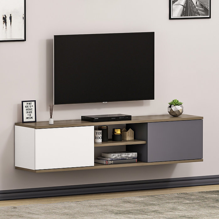 המזנון הטלוויזיה הצף של HOMAX בעיצוב מודרני, נועד להתאים לכל חלל במגוון צבעי ניטראלי: לבן, אגוז ופחם. כולל תאי אחסון ומדפים לשימוש אופטימלי.