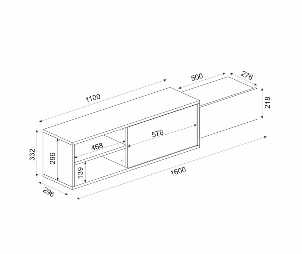 מזנון טלוויזיה צף DIUN DE2521 עם מקומות אחסון, עשוי שבבית דחוסה 18 מ"מ – מבית HOMAX