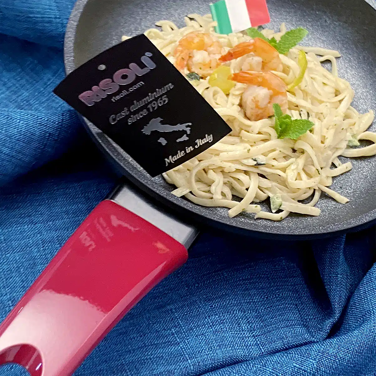 מחבת קרמית נון סטיק מסדרת Vinum של חברת Risoli האיטלקית היא הבחירה המושלמת להכנת מאכלים בסגנון איטלקי. המחבת בקוטר 28 ס”מ ועומק 4 ס”מ, מצופה ביוקרמי XR3 Bioceramic המחוזק בחלקיקים מינרליים לסיליקון קרביד, המספקים עמידות לאורך זמן וביצועים מעולים בטיגון ובבישול. גוף המחבת עשוי מאלומיניום יצוק איכותי ממוחזר 100% (EcoAlu) להולכת חום אחידה, עם תחתית בעובי 7 מ”מ שמונעת שינויים בחום.