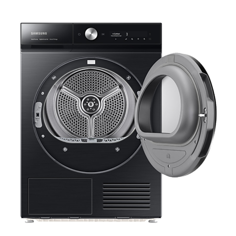 מייבש כביסה סמסונג DV90BB9445GB: קיבולת 9 ק"ג, אחריות שנה, טכנולוגיית AI, חיבור Smart Things, Heat Pump Digital Inverter, דירוג אנרגטי +++A, תפריט בעברית ואנגלית, תוף יהלום, לוח בקרה LED.