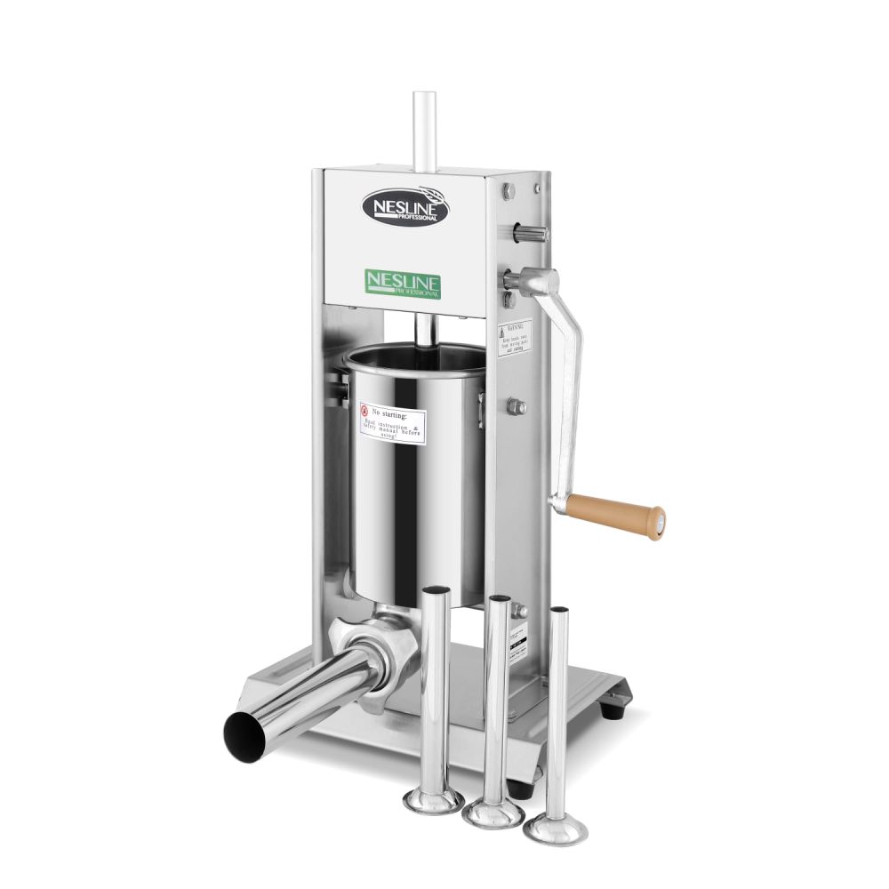 מכונה ידנית למילוי נקניקיות באופן מהיר ואחיד , עשויה נירוסטה איכותית. להכנת סוגים שונים של נקניקיות או קבבים באמצעות ארבע פיות מילוי מתחלפות (כלולות במארז המכונה) בקוטר 16, 22, 32 ו-38 מ"מ