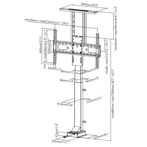 - טווח גובה: 700~1910 מ"מ