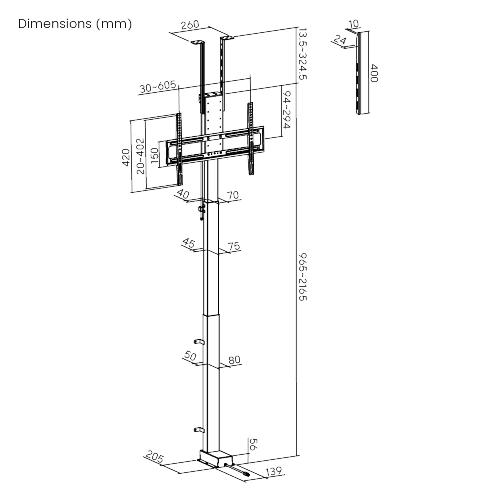 ממדים (HxWxD) 216.5×635×978.5 מ"מ (גובה מתכוונן עד 2489.5 מ"מ)