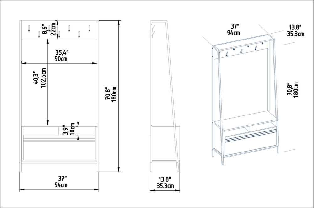 מעמד מעוצב Devin בצבע אגוז-שחור עם רגלי מתכת – גובה 180 ס"מ – מבית HOMAX