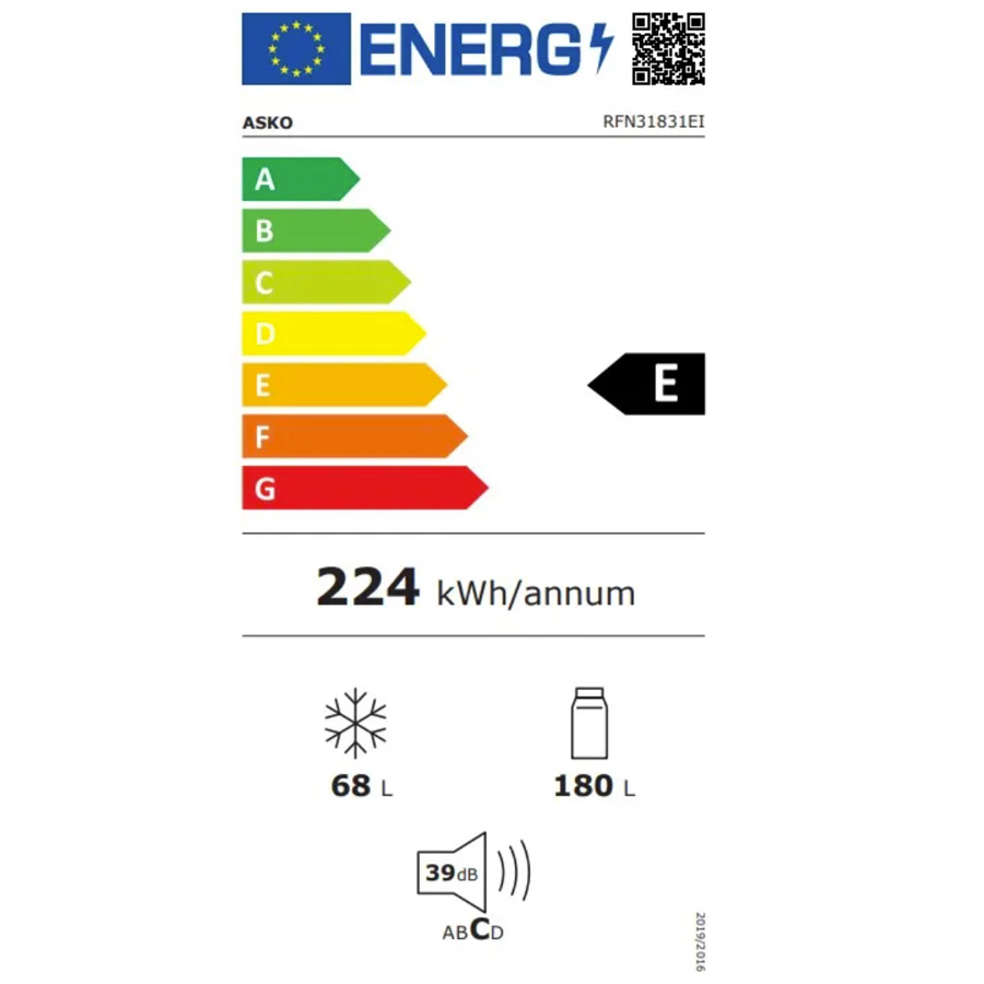 מקרר אינטגרלי ASKO RFN31831EI עם טכנולוגיית No Frost ומקפיא תחתון