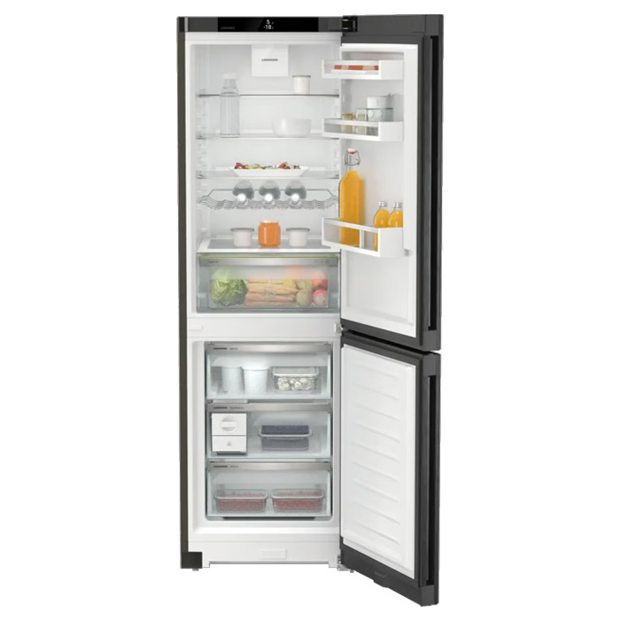מקרר מקפיא תחתון ליבהר CNbdb 5223 כולל מערכת קירור כפולה, טכנולוגיית NoFrost למניעת קרח, Easy Fresh לשימור טריות, Super Silent לפעולה שקטה ו-Easy Twist Ice לקוביות קרח. שנה אחריות.