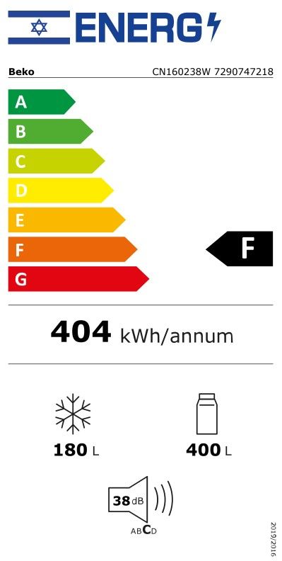 נפח אחסון: תא מזון 400 ליטר, תא הקפאה 180 ליטר