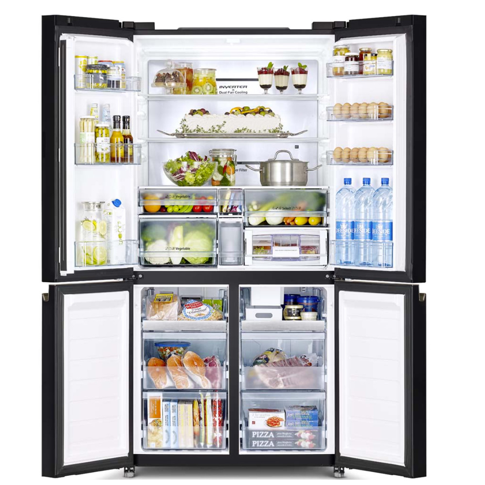 - מקרר 4 דלתות עם מקפיא תחתון בגימור זכוכית כסופה