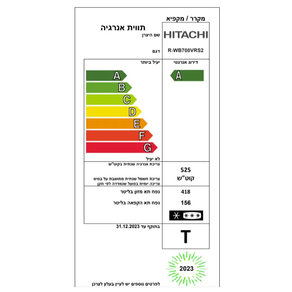 - צריכת אנרגיה שנתית: 525 קוט"ש
