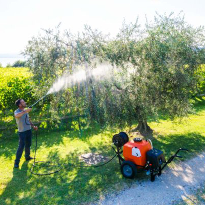 הודות לידית נשיאה הנוחה, הגלגלי בלון עם פנימית ומוט התמיכה הקדמי המוצק, המרסס מאפשר תמרון בקלות ויציבות על קרקע משופעת ולא ישרה. המיכל החזק והמרווח מאפשר לך זמן עבודה ארוך.