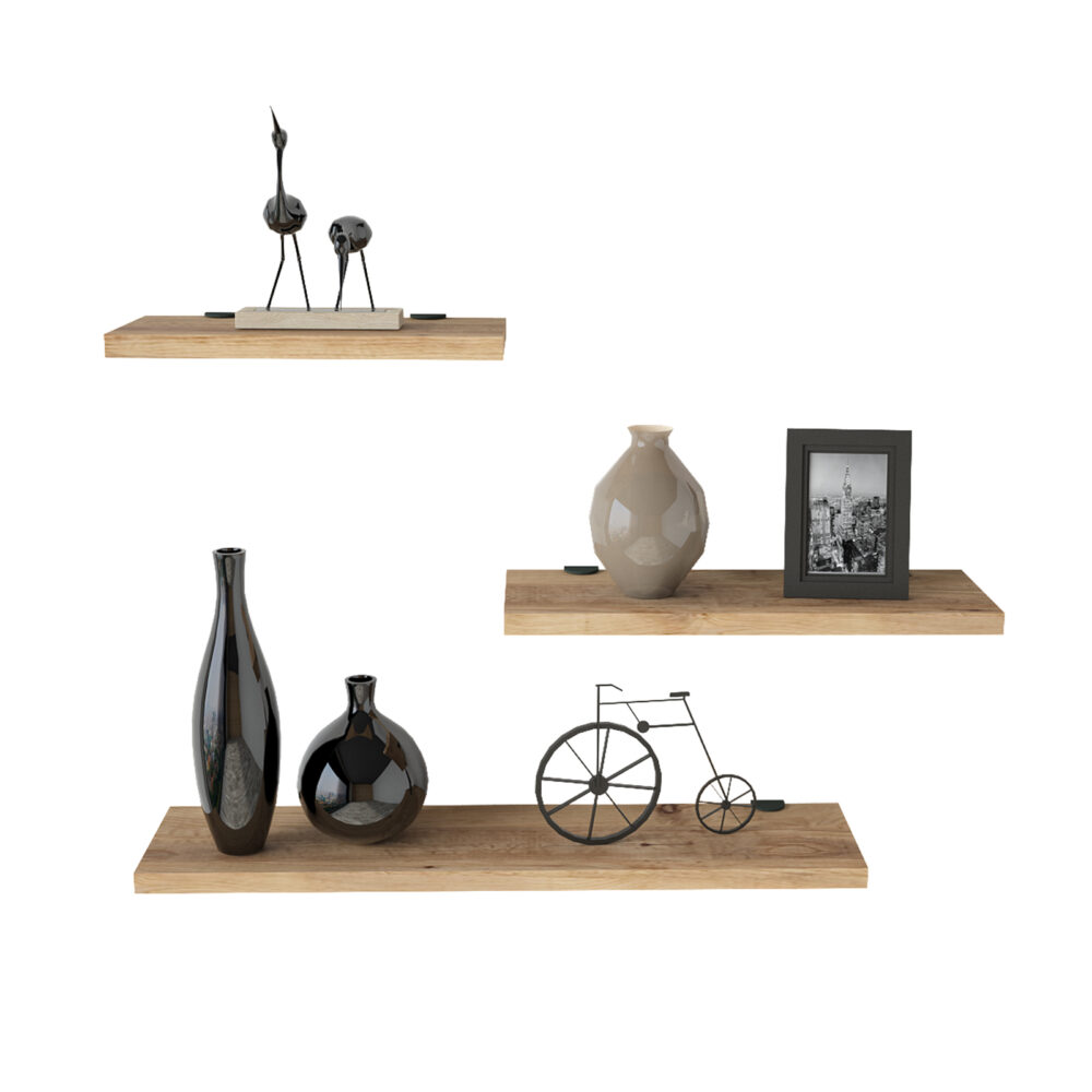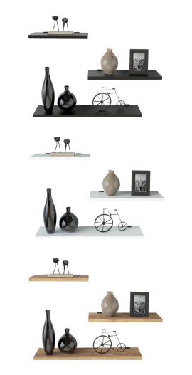 - שלישיית מדפים צפים באורכים שונים לעיצוב חלל הבית.