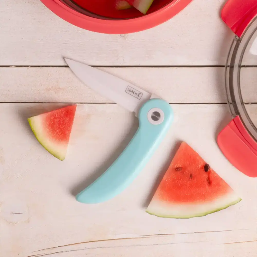 סכין הפיקניק הקרמית של LURCH היא כלי חיתוך איכותי ונוח לשימוש בכל מקום. היא משמרת את טעמו וערכיו התזונתיים של המזון בזכות הלהב הקרמי החד שלה, שאינו יוצר תגובה כימית עם המזון ואינו מחליד. מאפייני העיצוב המתקפלים והמשקל קל מאפשרים כניסה קלה לתיק, סל פיקניק או מגירת המטבח.