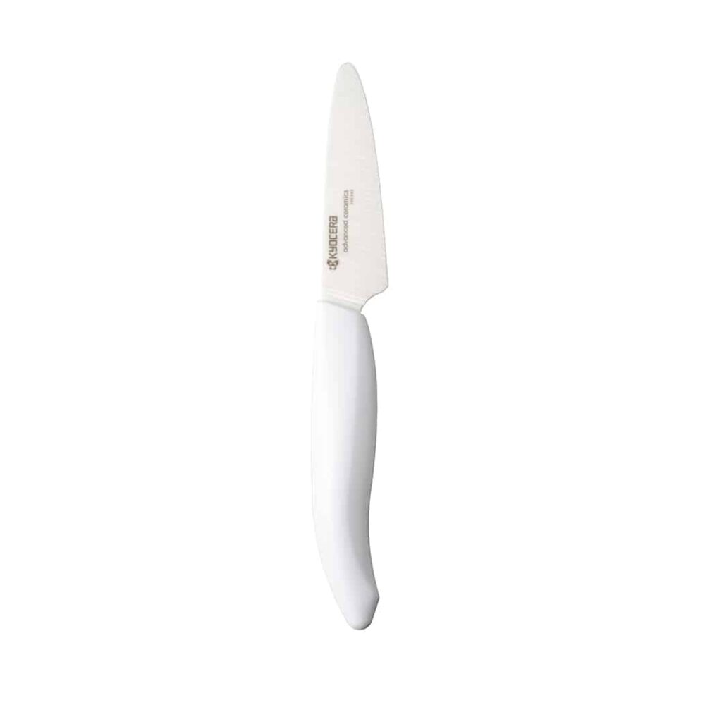סכין קרמית מבית Kyocera, בעלת להב קצר וחד המתאימה לפירות, ירקות ותבלינים. מצטיינת בחיתוך מדויק, עמידות וקלות וכוללת ידית ארגונומית. עשויה מחומר זירקוניה המונע חמצון ואינו מחליד מה שהופך אותה לכלי אידיאלי גם למטבים מקצועיים וגם לביתיים.