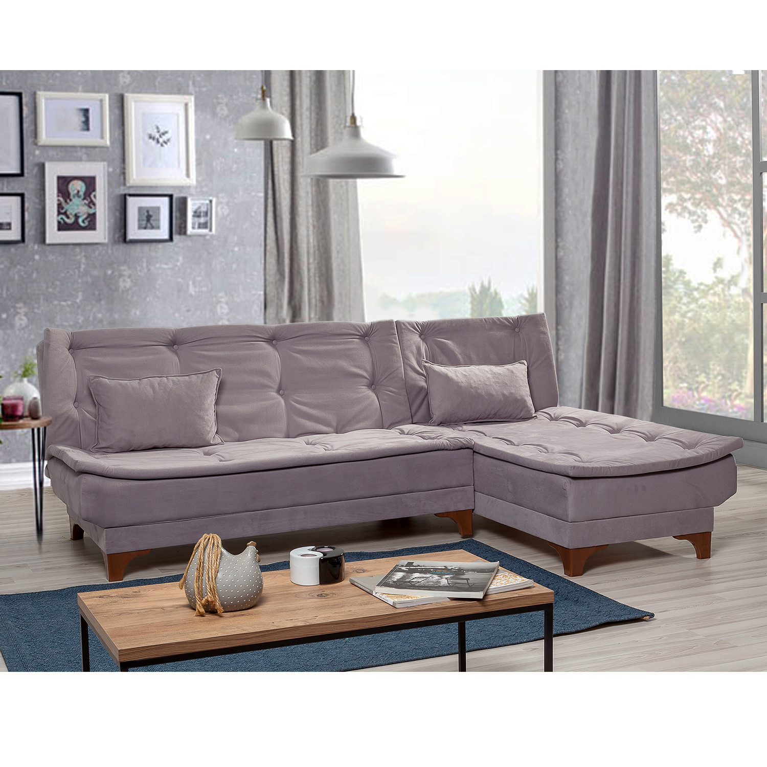 ספה פינתית נוחה ואיכותית עם אפשרות לפתיחה מהירה למצב מיטה, ריפוד סרוג נעים ומילוי ספוג עם מסגרת עץ.