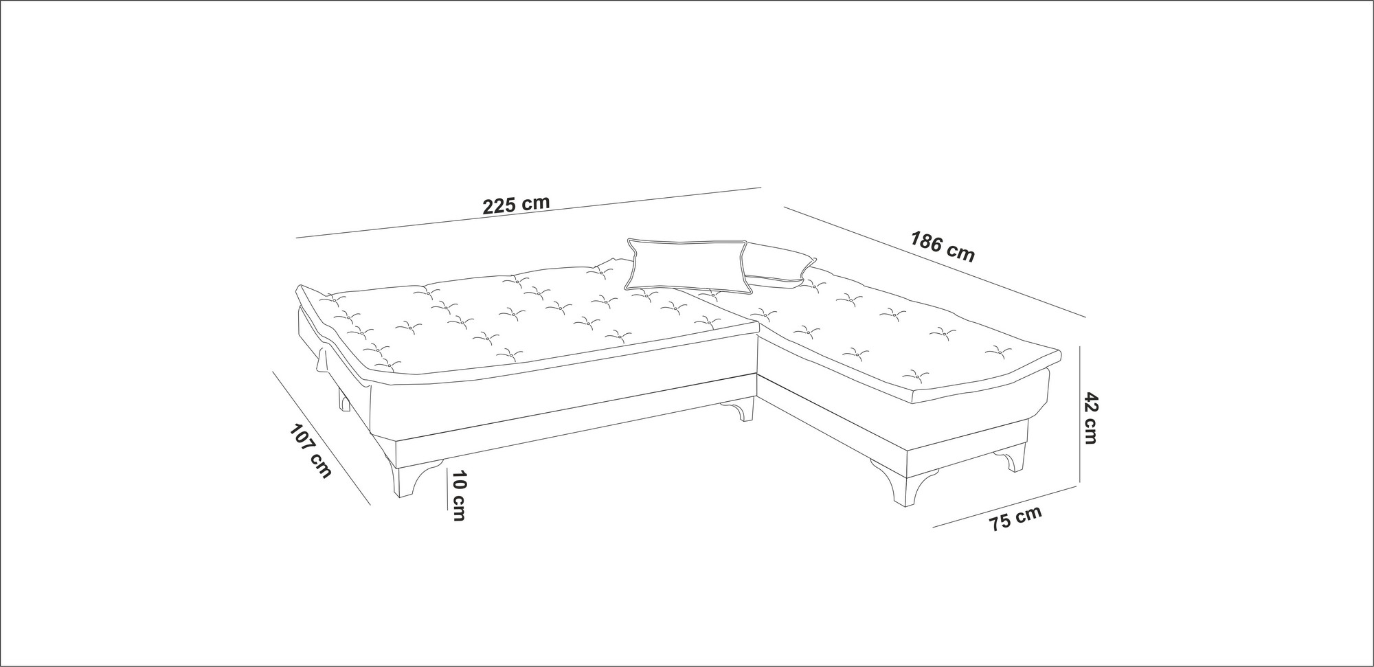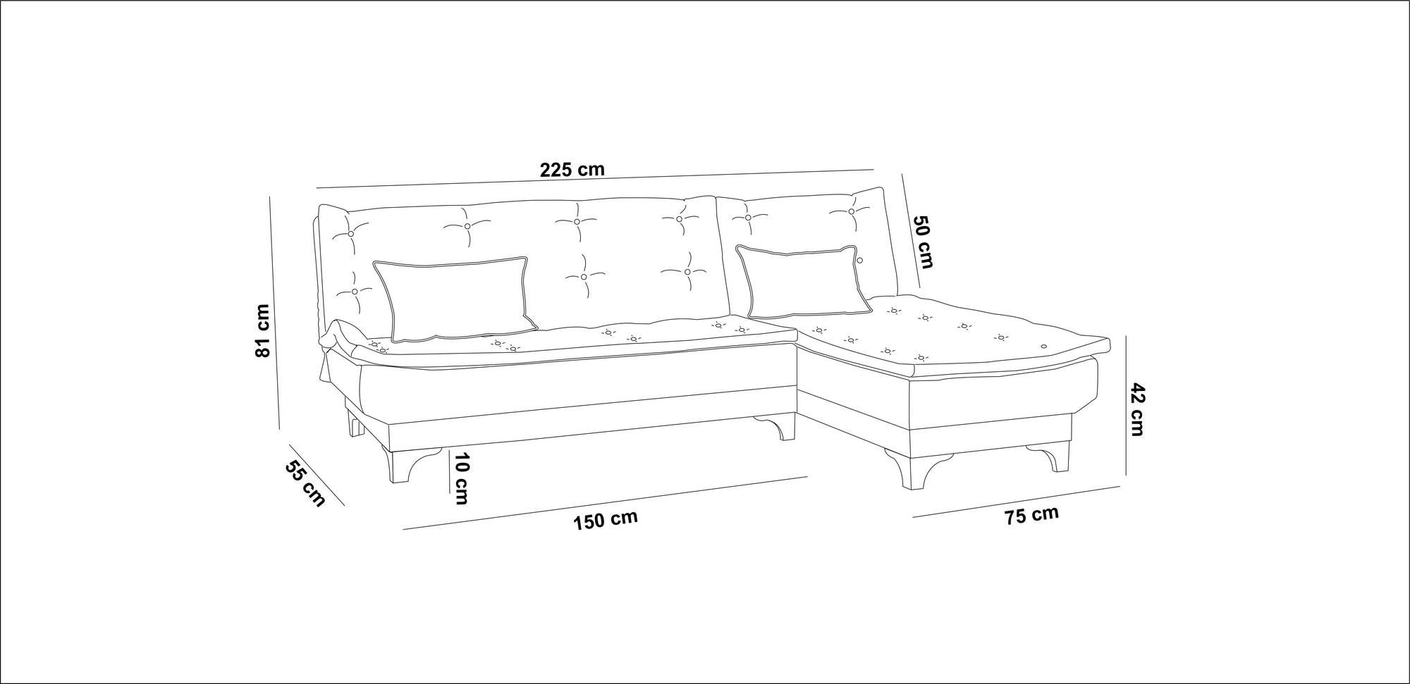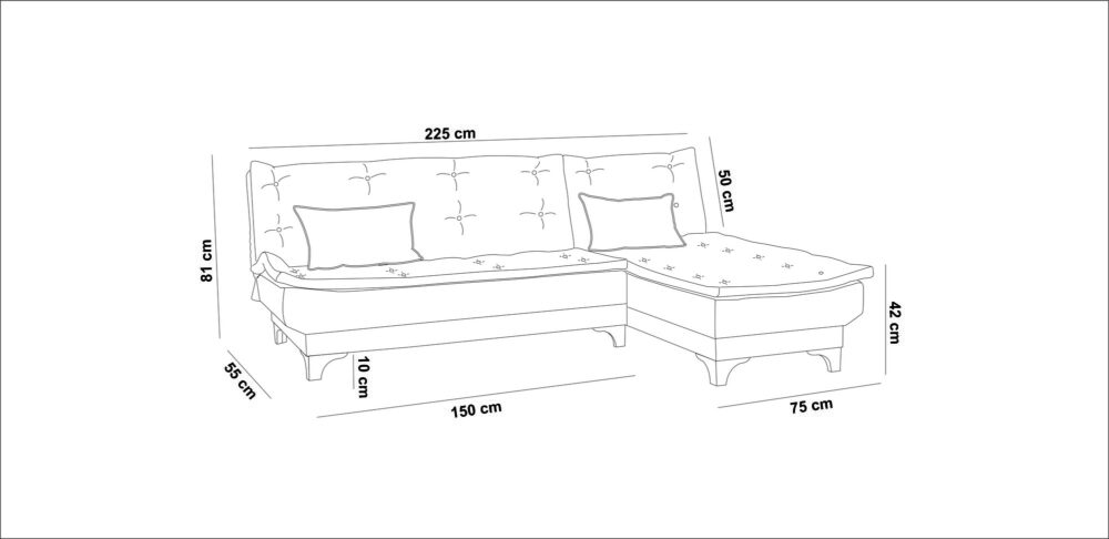 - מידות הספה: 225 * 81 * 107 ס"מ