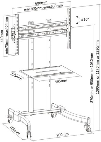 עגלה למסך 75 אינץ' EAZO IR65 עם מדף מתכונן – קונקטור