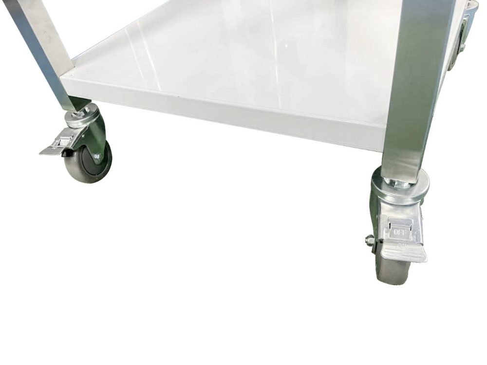 עגלת נירוסטה במידות 80/60 ס"מ גובה 90 ס"מ בעל ידית דחיפה ומדף תחתון