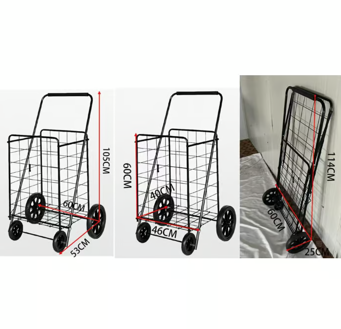 עגלת קניות מתקפלת בעיצוב חזק ופרקטי, מתאימה לנשיאת קניות, חבילות, תיקים ופריטים כבדים, תוך שמירה על נוחות מקסימלית בניידות ואחסון.