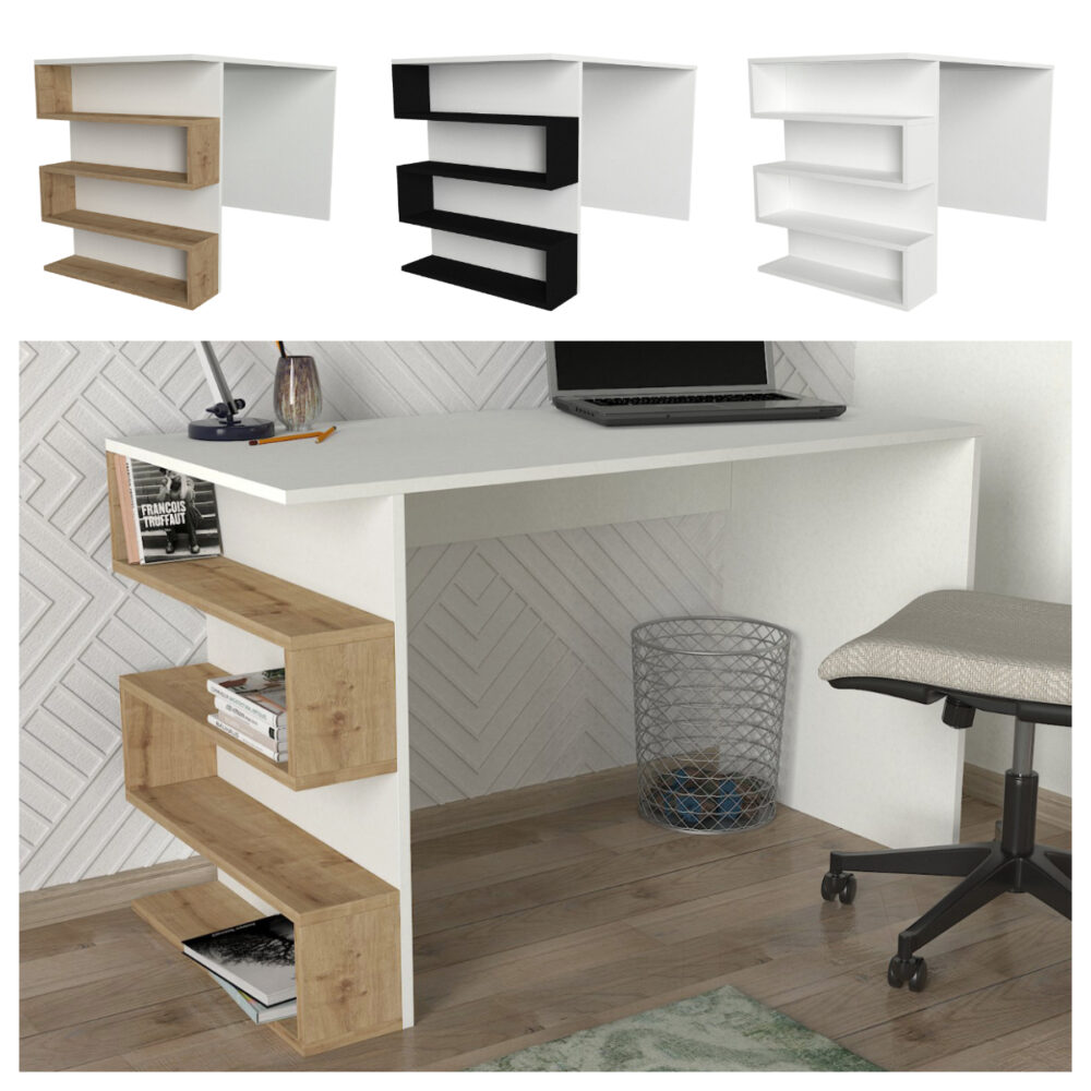 רגל השולחן מעוצבת כמדפי ספריה לנוחות אחסון מיטבית.