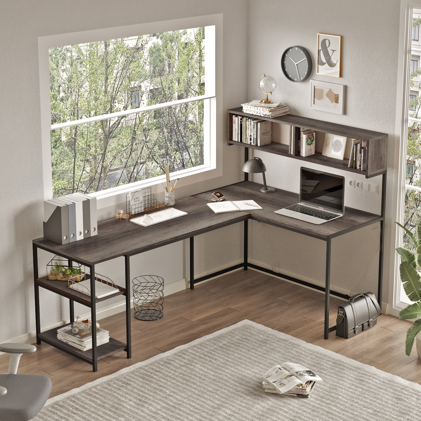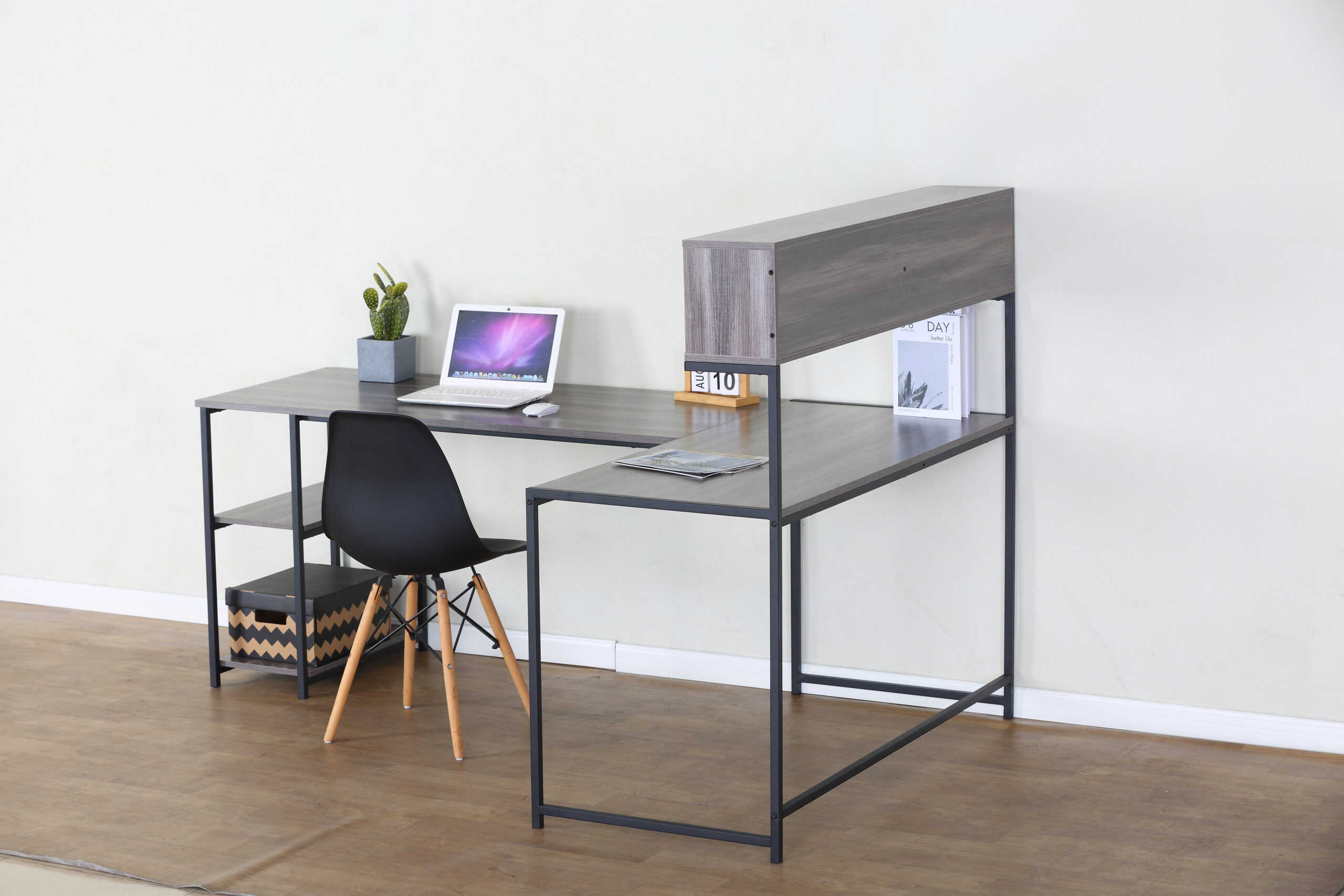 עמדת עבודה פינתית נוחה ושימושית מבית HOMAX, מציע משטח עבודה מרווח עם מדפים תחתונים וספרייה גבוהה לאחסון רב. מתאימה לשימוש במשרד או בבית, כולל חדרי ילדים ונוער.