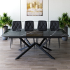 פינת האוכל מגיעה עם 4 כסאות איכותיים ונוחים בגוון שחור ומרופדים בד קטיפה איכותי , רגלי מתכת יצוק ובתחתית הרגליים מבודדים עמידים מפלסטיק למניעת שריטות ורטיבות לרגליים