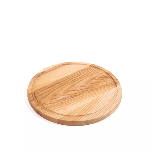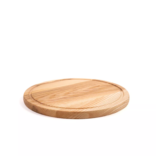 צלחת פיצה מעץ מלא, אשא, קוטר 30 ס"מ, גובה 2 ס"מ. בעיצוב עגול עם תעלת ניקוז נוזלים.