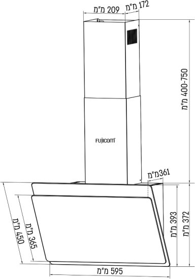 קולט אדים צמוד-קיר רוחב 60 ס"מ Fujicom