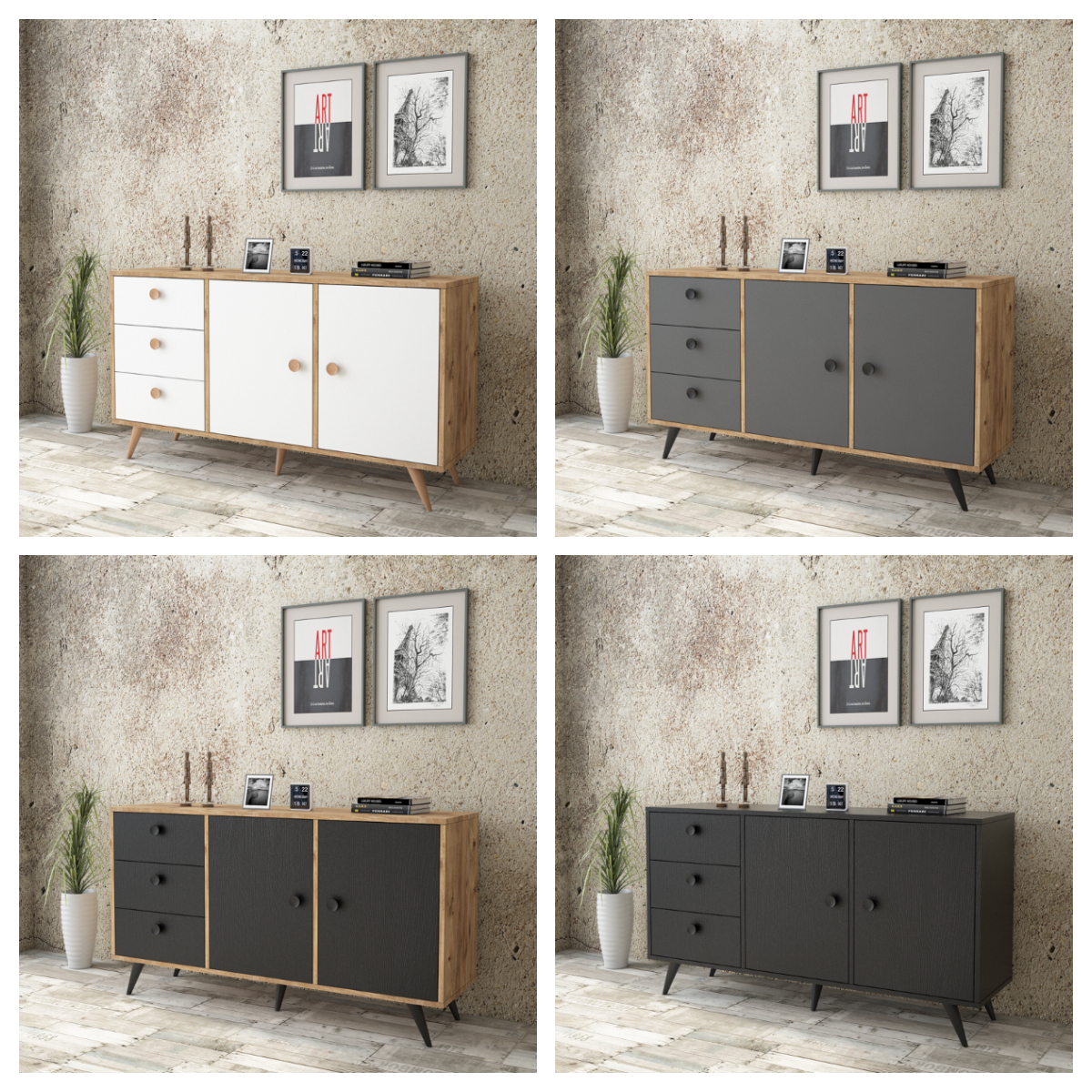 קונסולה מהממת ופרקטית לכניסה לבית, מתאימה גם כריהוט משלים לחדרי השינה או המשרד. הקונסולה מעוצבת ויציבה, עם 2 דלתות ו-3 מגירות המספקים אחסון נרחב. כל דלת כוללת מדף שמחלק את החלל לאחסון.