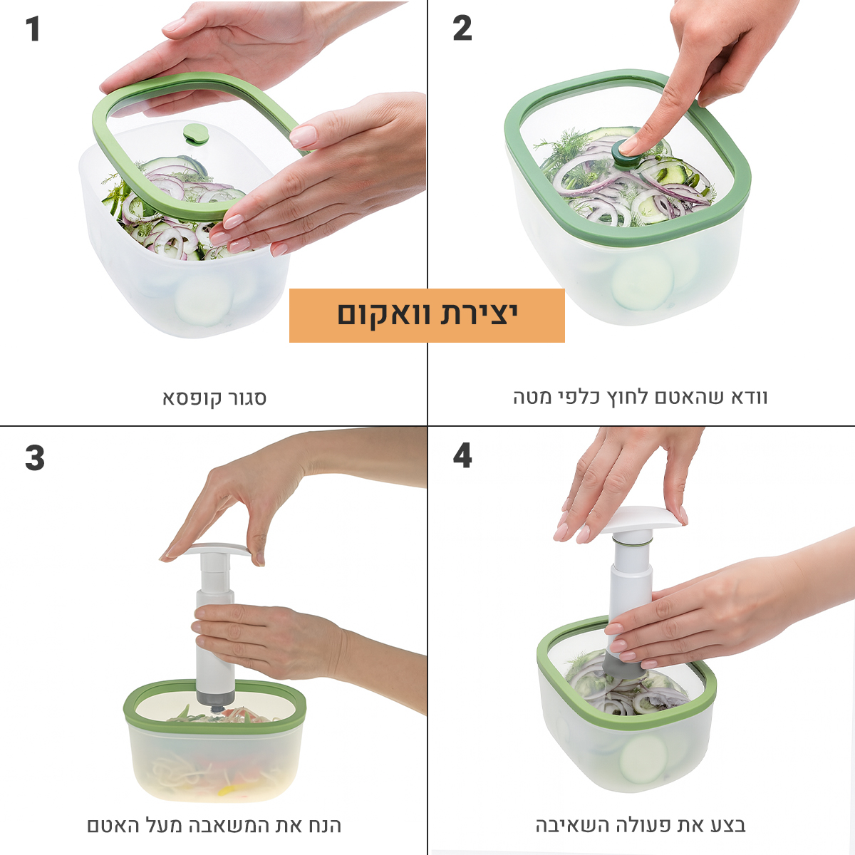 - שימור טריות פי 4 יותר מאחסון רגיל באמצעות ואקום המאט תהליך קלקול.