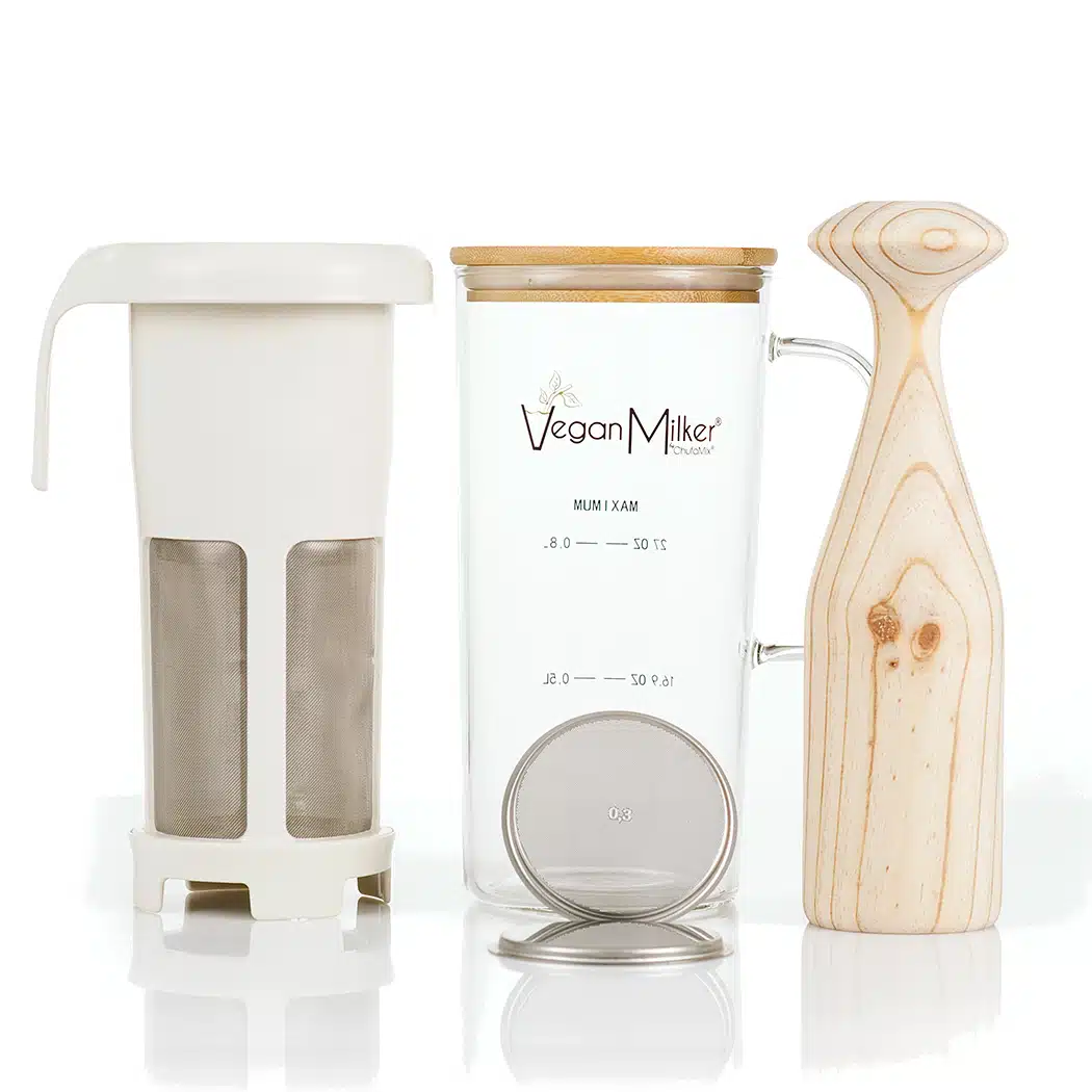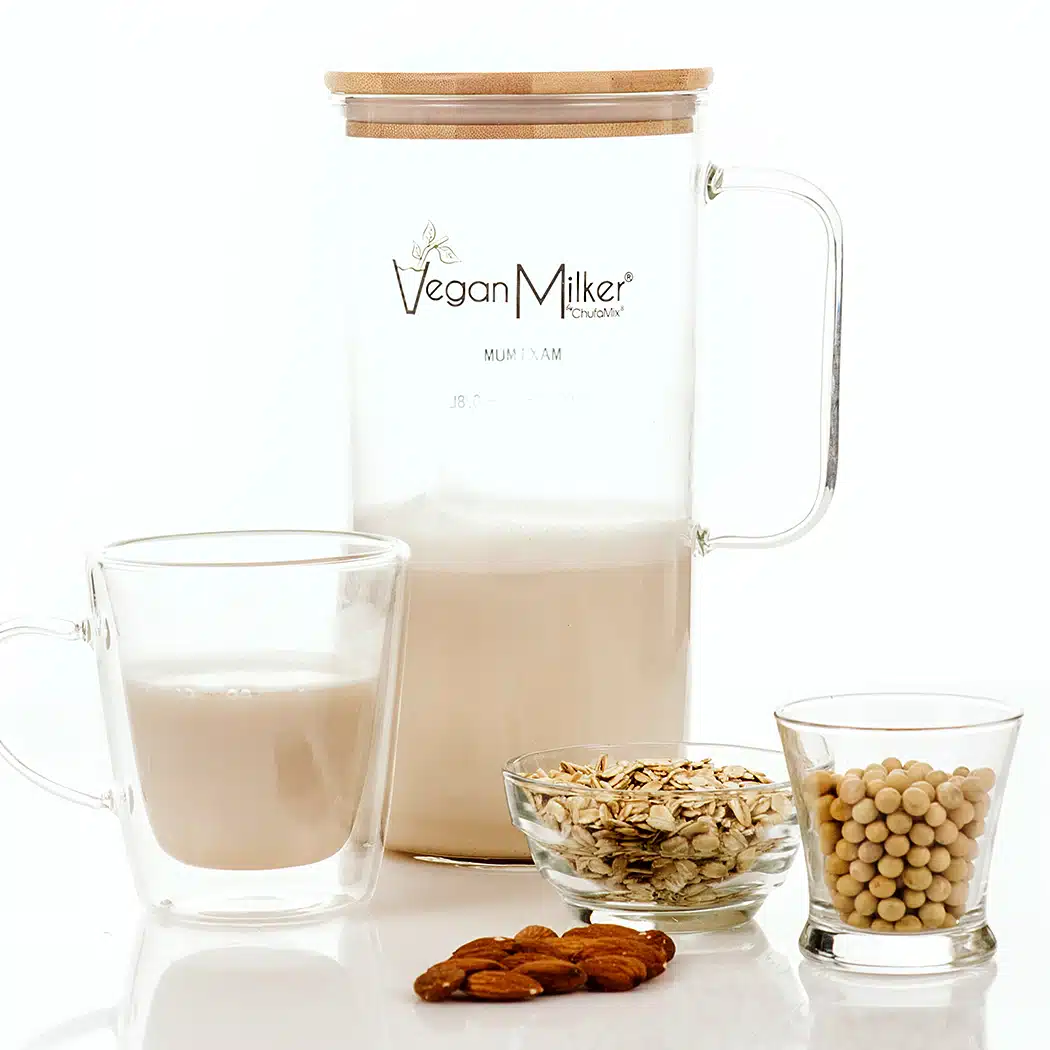 קנקן זה מותאם למכשיר Vegan Milker, פטנט ספרדי מבית שופמיקס להכנת תחליפי חלב בבית. המכשיר כולל מיכל, מכסה, קנקן פנימי עם מסננות מנירוסטה, דוחסן ושלושה דיסקים לשליטה על מרקם האמולסיה. זהו המכשיר היחיד שטוחן ומסנן בו זמנית ומעניק לחלב הצמחי מרקם עשיר וקרמי.