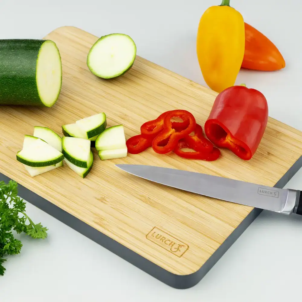 קרש החיתוך מבמבוק של חברת Lurch מתאים לשימוש יומיומי במטבח. הוא רב תכליתי ומתאים לחיתוך והגשה. גודלו 25X33 ס"מ ודופנו בעובי 1.5 ס"מ. החומר הצפוף שומר על להב הסכין ומשטח העבודה חלק ויציב. הקרש יכול לשמש גם כמשטח מגן לכלי חם וכתחליף להגשה. הוא אקולוגי וניתן למחזור, ומיוצר מבמבוק מגידול בר קיימא.