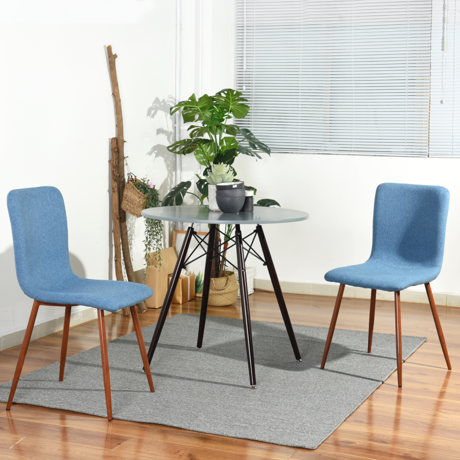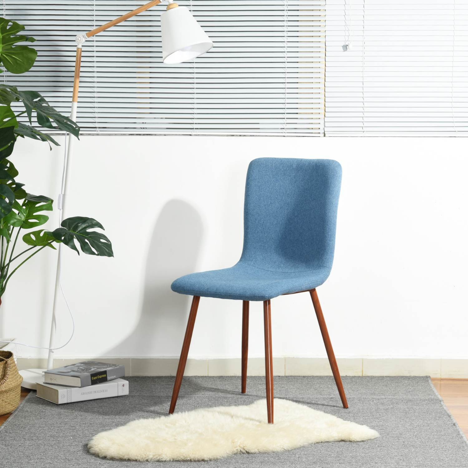 - תכלת, בד – רגליים בצבע עץ