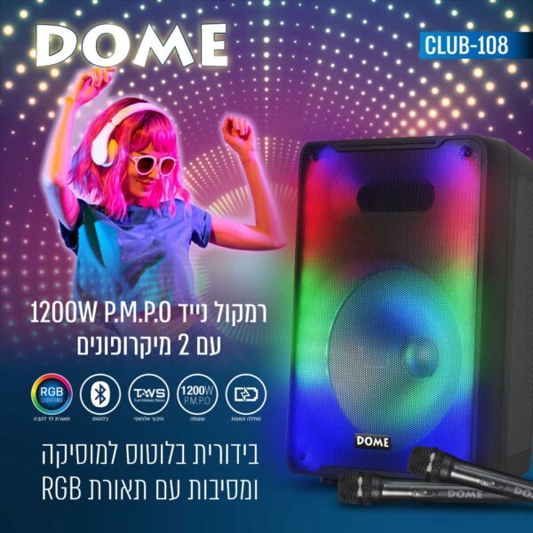 - רמקול DSP עם וופר ‘’8 אקטיבי ומעבד סאונד שמאפשר שליטה ועיבוד צליל מדהים עם סאונד ובס חזק ודינמי בהספק 1200W P.M.P.O