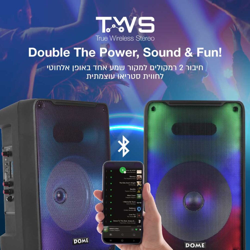 - TWS – חיבור 2 רמקולים למקור שמע אחד אלחוטית לקבלת צליל סטריאופוני
