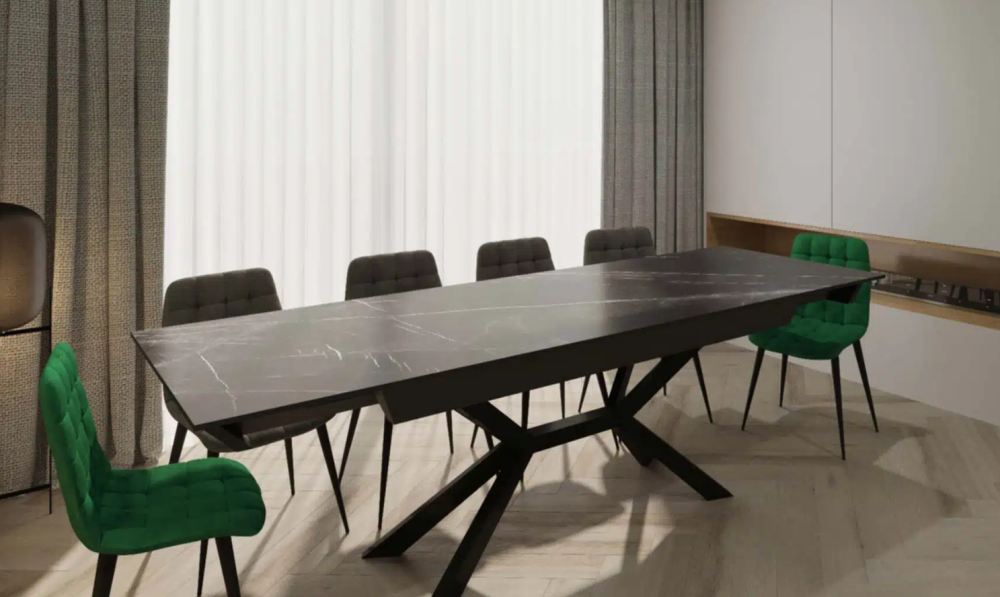 שולחן לפינת אוכל מלבני דמוי שיש נפתח מעץ דגם גרניט שחור