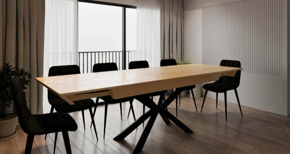 פינת אוכל מלבנית נפתחת מעץ דגם עץ טבעי.