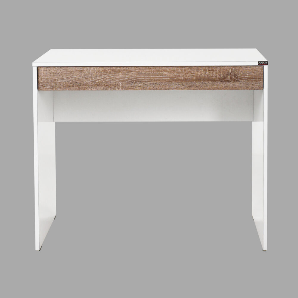 שולחן עבודה פונקציונאלי בעיצוב מודרני עם מגירת אחסון מרווחת. מעוצב בצבע לבן גלוסי בשילוב חום בהיר, אידיאלי לשימוש במשרד או בחדר העבודה. שולחן יציב ואיכותי בהוראות הרכבה פשוטות. מגיע בגודל קומפקטי ומתאים לשולחן כתיבה או מחשב.