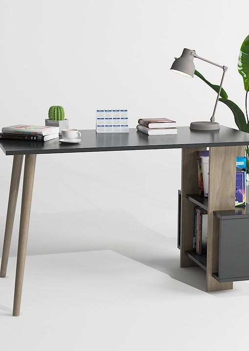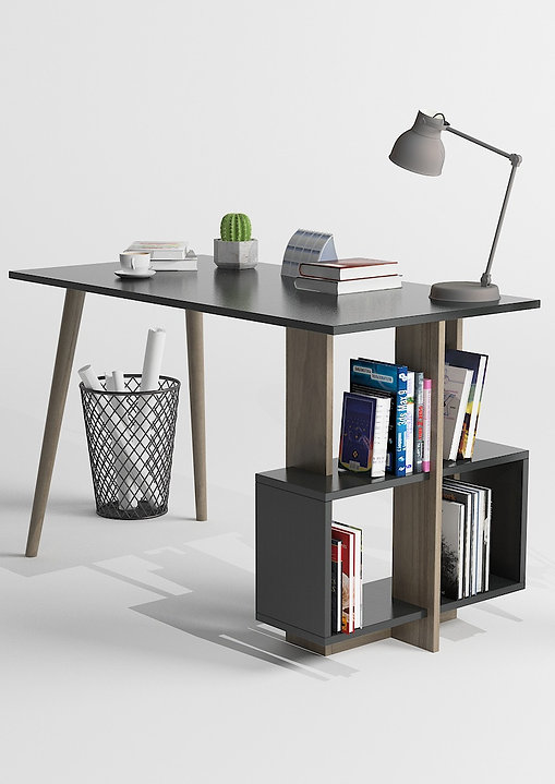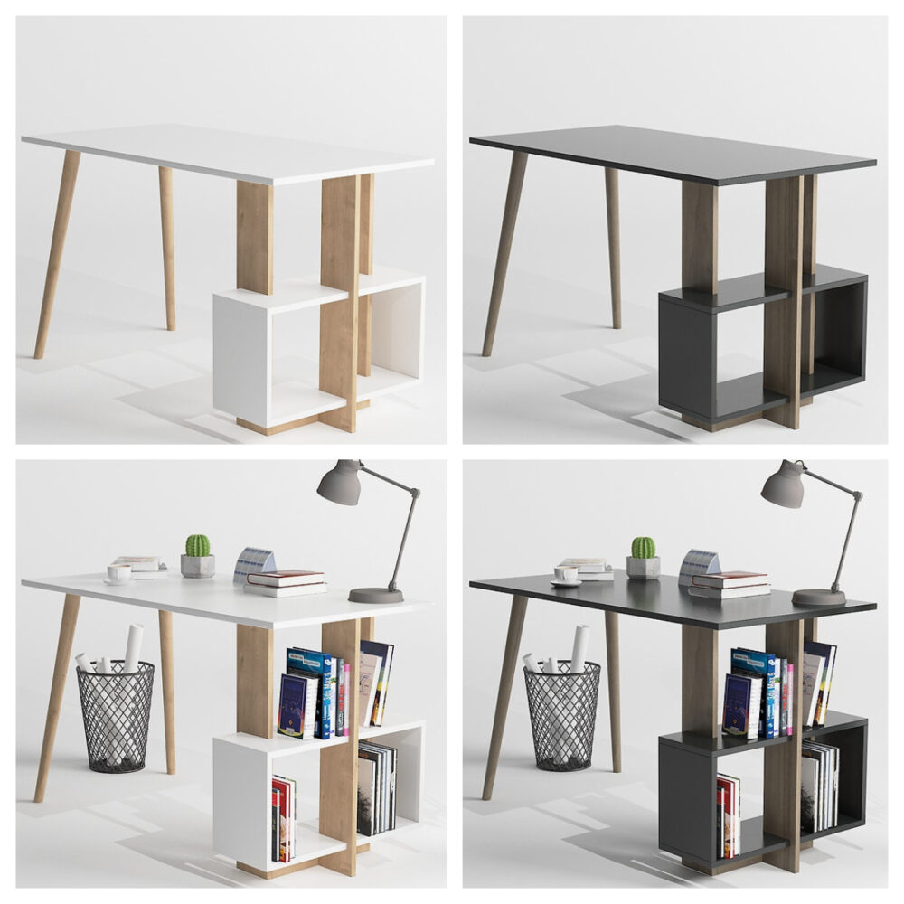 שולחן עבודה Lagomood Side עם ספרייה ו-4 חללי אחסון בצד ימין – מבית HOMAX