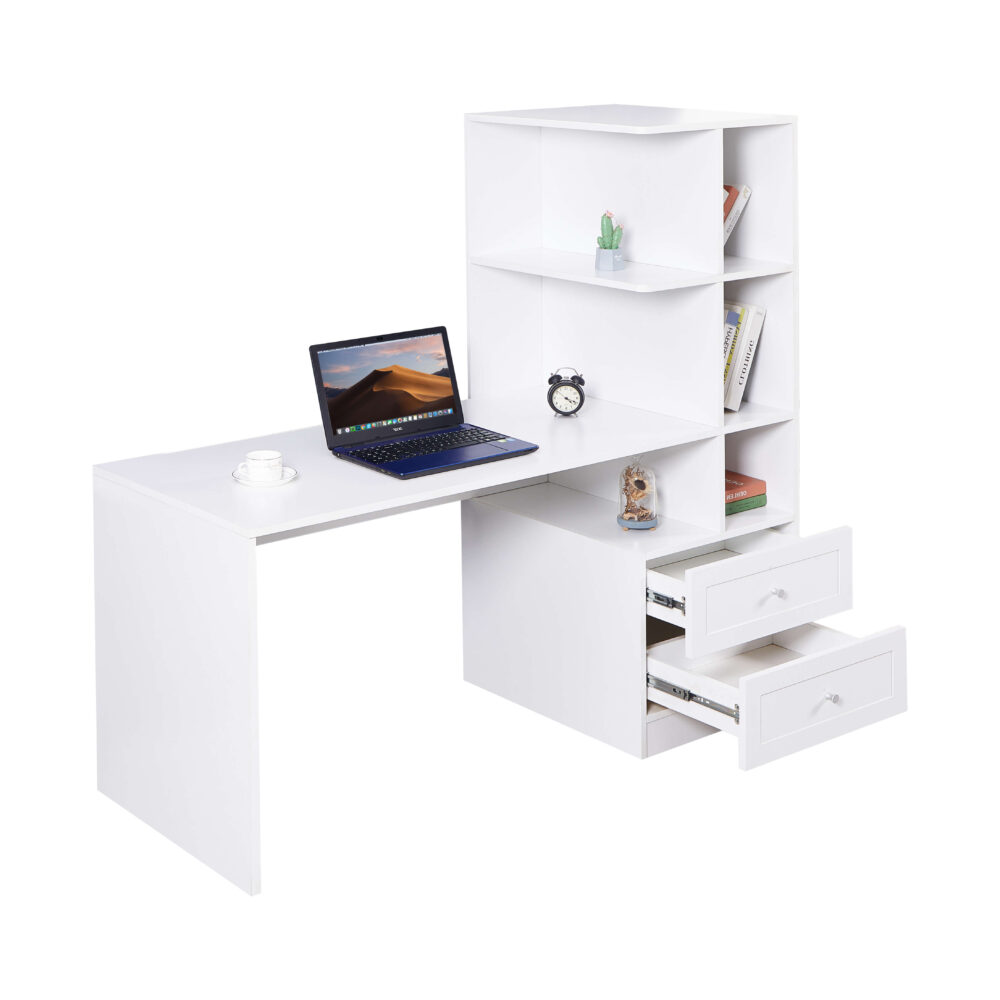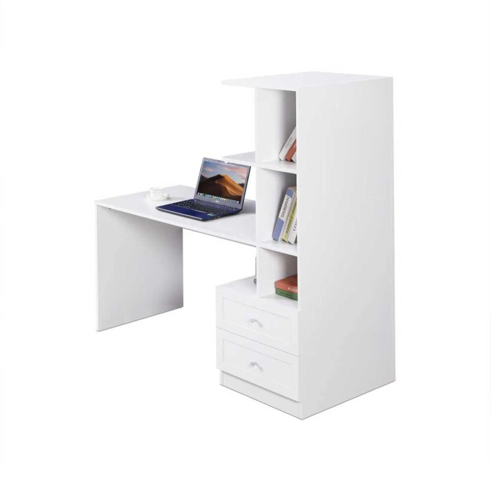 שולחן תלמיד ייחודי עם ספרייה דגם שקד Shaked בלבן מבית WOODY