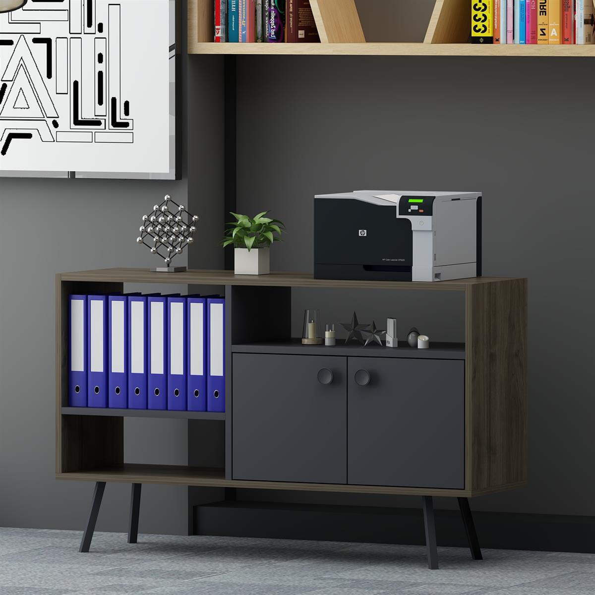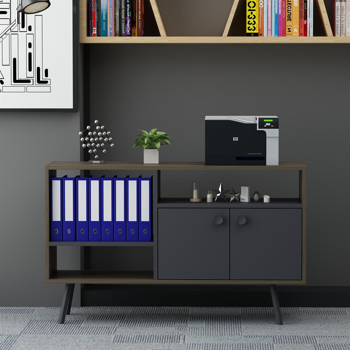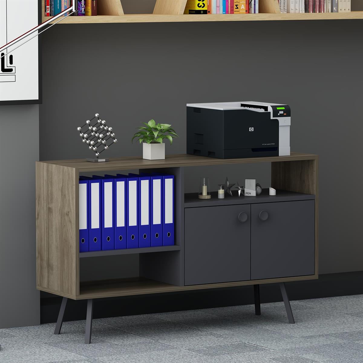 השידה כוללת שתי דלתות לאחסון סמוי ומיועדת לאחסון מגוון של פריטים כמו קלסרים, משחקים ופרטי עיצוב.