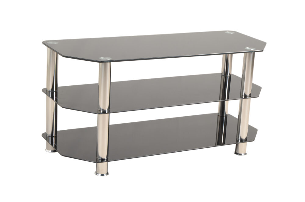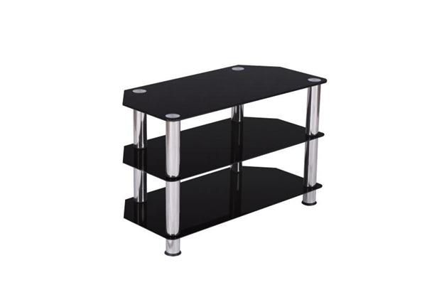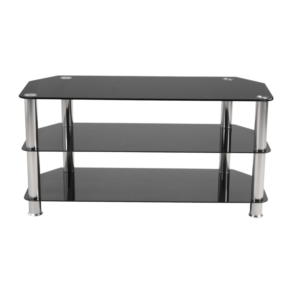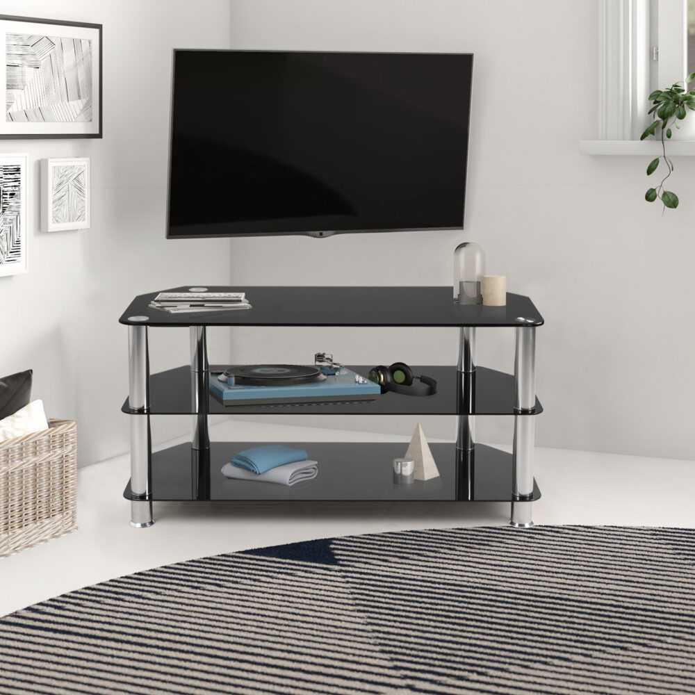 - שידה טלוויזיה מעוצבת ומרהיבה, עשויה מזכוכית בצבע שחור
