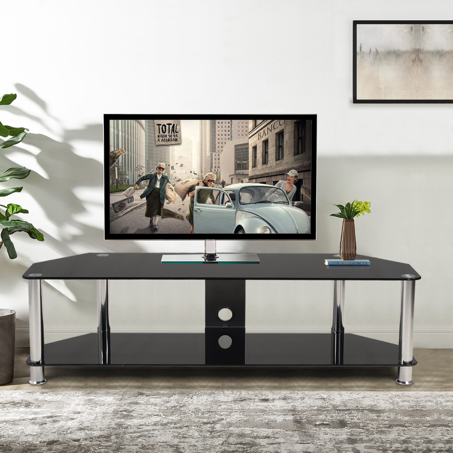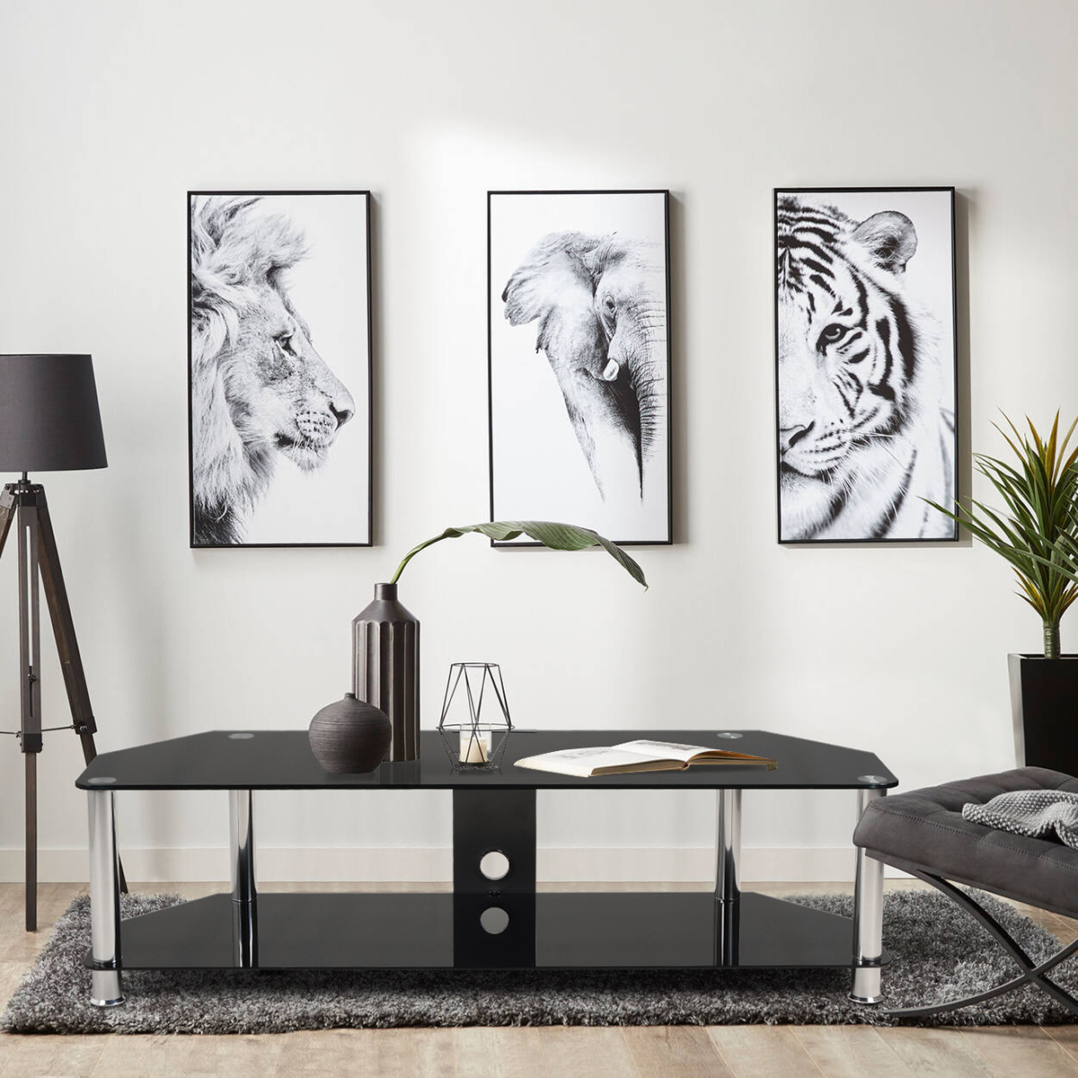 • שידה טלוויזיה יפיפייה עשויה מזכוכית צבועה בצבע שחור.