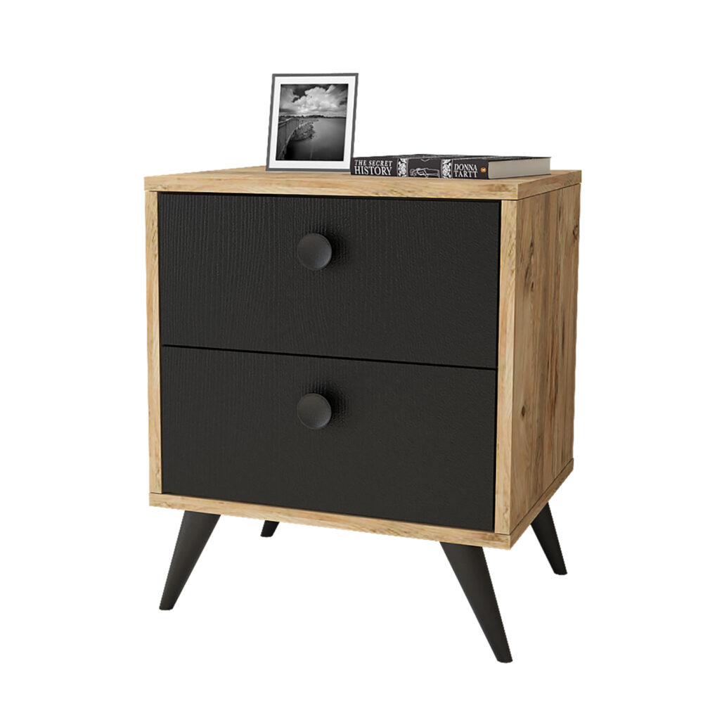 שידת לילה בעיצוב נקי עם 2 מגירות מרווחות בעובי 18 מ"מ – מבית HOMAX