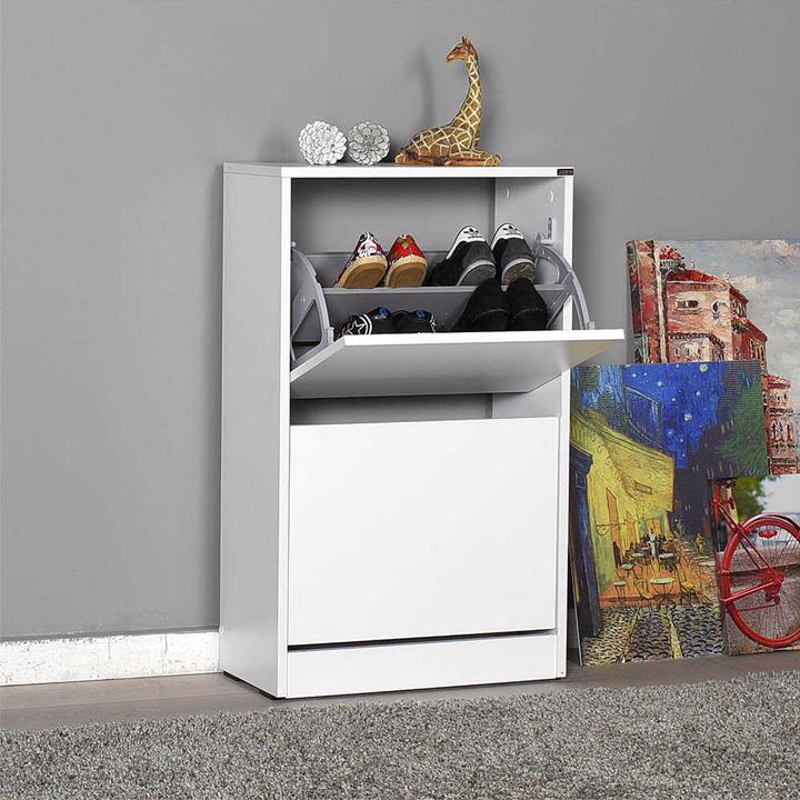 שידת נעליים סקארפה 2 HC320 מספקת פתרון מצוין לאחסון מסודר ונוח של הנעליים בבית. בעיצובה הנקי והלבני, היא מתאימה להעמדה בכניסה לבית או בחדרים נוספים, ומשלבת פרקטיות עם עיצוב. השידה כוללת שני תאים שכל אחד מהם מכיל זוג מדפים ייעודיים לנעליים. עשויה מחומרים איכותיים ומציעה הרכבה עצמית קלה.